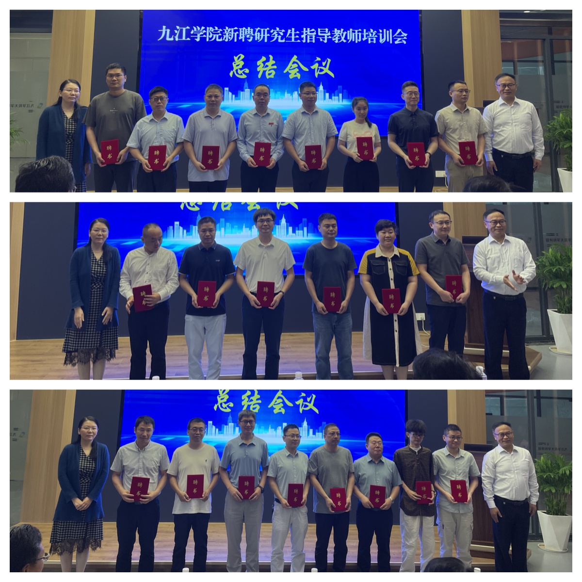 24日上午,新聘研究生指导教师培训会总结会议在科技园一楼召开。王万山出席会议,对新聘研究生导师提出了希望和要求。上海理工大学研究生院副院长郑继红、研究生工作部部长彭宗祥为2024年九江学院新聘研究生指导教师颁发了导师聘书。