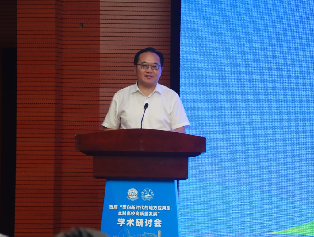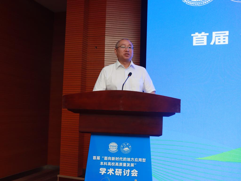杜少华代表九江市政府致辞。他表示,九江是历史文化名城,泱泱长江水,汇聚浔阳城。目前,九江正致力于建设长江经济带重要节点城市。在此时期,地方应用型本科高校应该聚焦转型发展中的热点问题,汲取各方智慧,探索发展路径。希望各位专家学者,以本次研讨会为契机,使应用型本科高校发展与城市转型建设紧密融合、互为助力,以学术铮铮清音叩响九江社会经济高质量发展之歌。