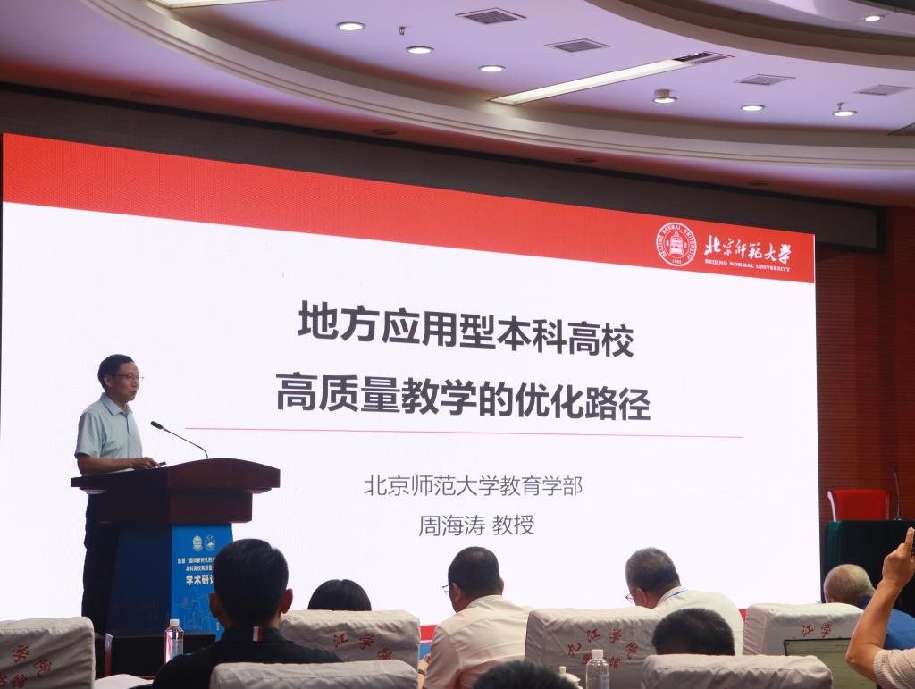 周海涛作了题为《地方应用型本科高校高质量教学的优化路径》的报告。报告聚焦地方应用型本科高校教学的发展特征、现存问题、优化路径这三个模块,逐级推进、层层铺开,阐述地方应用型本科高校在发展过程中的痛点、难点与破局之法。