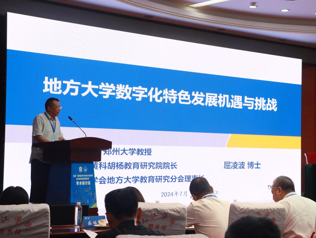 屈凌波作了题为《地方大学数字化特色发展机遇与挑战》的报告。报告围绕数智时代高等教育发展面临的挑战、高等教育模式的重塑与重构这两个方面,探讨地方普通本科高校在迎接数智化教育时代的浪潮中,应该如何通过培养促进新质生产力发展的创新型应用型人才,稳健地走向数字化转型之路。
