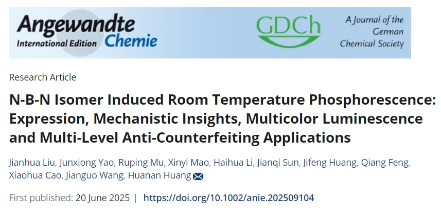 近日,我校化学化工学院有机智能材料创新团队在有机室温磷光(RTP)材料构筑及应用研究方面取得突破性进展,相关研究“N-B-N Isomer Induced Room Temperature Phosphorescence: Expression, Mechanistic Insights, Multicolor Luminescence and Multi-Level Anti-Counterfeiting Applications”发表于国际顶级期刊《Angewandte Chemie International Edition》(德国应用化学)上。这也是该团队继2019年以后,再次以九江学院为第一通讯单位在该期刊发表研究成果。