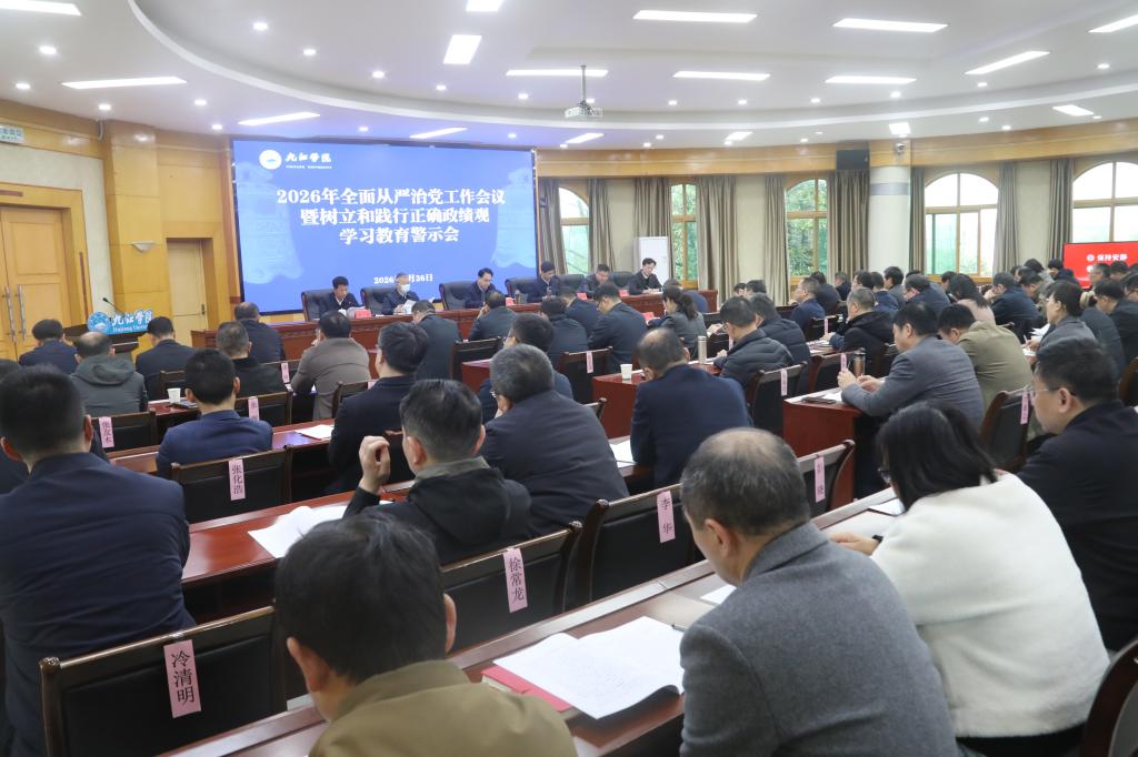 3月26日上午,学校召开2026年全面从严治党工作会议暨树立和践行正确政绩观警示教育会。校党委书记李明斌出席并讲话,党委委员、纪委书记、监察专员刘波作纪委工作报告。会议由党委委员、副校长查振华主持。党委委员、副校长鲁卫东、雷志强、吴维勇出席会议。