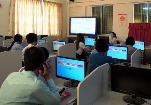 此次HSKK口语考试是柬埔寨首次开展的汉语口语水平考试。为了能够让学生更好的熟悉并适应考试流程,孔子学院考试中心免费为学生进行不同等级HSKK考前培训。经过孔子学院老师多次辛苦地讲解,学生能够熟练地操作HSKK考试流程。孔子学院高度重视首次HSKK考试,考试当天孔院进行了严格周密的考场安排和考务分工,并于考前召开考前例会,明确考试流程及要求,明晰每位考官的职责和义务,以确保考试的顺利进行。考试过程中,为了保证考试顺利进行,孔子学院监考老师在考试每一个环节,针对考试中药注意问题及对学生多发的问题及时总结并随时提醒学生。除此之外,监考老师在每一个考试环节都进行详细的指导和介绍说明,及时的检查学生信息的填写,以减少学生的信息错误。为保证考试公正公平的进行,中方院长帅式毅定时巡视考试现场,及时了解考试信息,使整个考试过程有序顺利的开展。