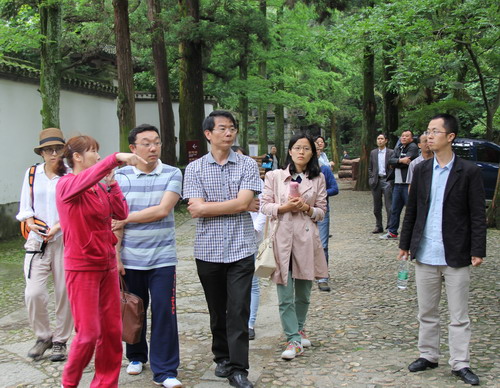 位于庐山五老峰南麓的白鹿洞书院,傍山而建,古建筑群以明、清建筑为主,包括礼制性建筑和实用性建筑,主体建筑为棂星门、泮池、状元桥、礼圣门和礼圣殿,楼阁庭园尽在参天古木掩映之中,无市井之喧哗,有泉石之胜境,是一块地道的风水宝地和学习场所。 各位老师一歩入书院,浓郁的书院气息铺面而来,心中的浮躁之气顿时荡然无存。大家怀着崇敬的心情驻足报功祠,停留御书阁,信步明伦堂,攀登思贤台,漫步枕流桥,停步流芳桥,登上独对亭,瞻仰进士榜,耳濡目染中感受其深厚的书院文化底蕴。