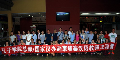 孔子学院新教师及志愿者是于2015年9月10日晚安全抵达金边的,帅式毅、赵玉玺及孔子学院部分教师到机场迎接,欢迎大家的到来。
