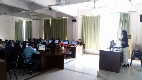 本次培训的内容主要是商务英语实训平台的使用以及管理。主要有教师平台管理,实训作业的发布,实训成绩的评定,学生在线实训及实训作业的上传等,教师们接受了较全面的培训。