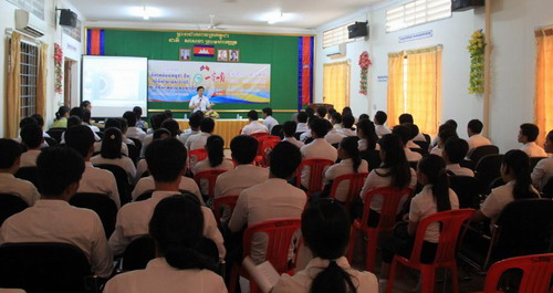 活动开始,谢莫尼勒院长首先通过一个3分钟的短片,让大家认识了“一带一路”的战略构想。他指出,“一带一路”是由中国国家主席习近平2013年9月和10月分别提出的建设“新丝绸之路经济带”和“21世纪海上丝绸之路”的战略构想。柬埔寨政府及洪森总理本人一直以来对“一带一路”全面支持并与中国政府大力合作。近年来,中国帮助柬埔寨修建了很多公路和桥梁以及多座水电站,这些是全柬埔寨人民都知道的事情,但是大家可能还不是十分清楚其实这些援建项目就是“一带一路”战略援助柬埔寨的基础设施建设的具体表现。我们孔子学院之所以开展“一带一路”活动就是为了在传播中国文化的同时,努力做两国政府及人民友好关系的桥梁和纽带,让两国人民更好地相互理解、更有效地交流沟通。