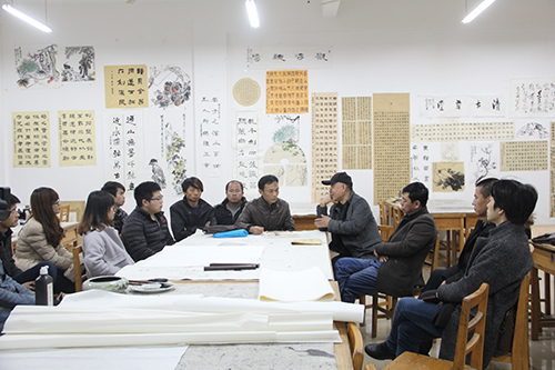 12月2日晚,艺术学院邀请优秀校友、江西画院副院长帅安先生就山水画创作与艺术学院学生社团组织——星河联合会白鹿书画社成员进行学术座谈。艺术学院党委书记王春生、党委副书记沈杨、美术教研室的余晓庭、徐远斌、王祖刚、吕卫寰等老师参加了此次学术讨论。