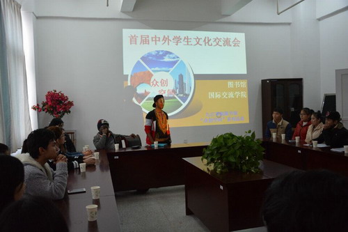 图书馆“众创空间”是在逸夫馆四楼新设立的一个有声交流平台,为全校师生的科研教学以及学习生活提供场地和信息服务。12月4日下午,逸夫分馆的“众创空间”迎来了首场文化交流活动---首届中外学生文化交流会。交流会由图书馆和国际交流学院联合举办,主要围绕不同国家的“民族语言、传统节日和民族舞蹈”等方面文化进行交流。来自我校柬埔寨、塞拉利昂、南苏丹的留学生和文传学院、土木学院、外语学院的部分中国学生,共20余人参加此次交流活动。