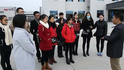 师生们受到江西生成公司卫生用品有限公司的热情接待。首先,公司人事经理带同学们参观了公司的办公区,工厂自动化生产车间、分公司新厂区、员工食堂、员工宿舍区和员工健身房等场所。随后,公司副总经理陈晖女士携公司各部门负责人与师生见面,陈女士表示公司随时欢迎同学们到公司工作或者实习。公司人事部门对应届毕业生求职、学历是否等同能力等六个方面的问题对同学们进行了提问。最后,公司各部门负责人与同学们就公司基本情况、工资待遇、岗位职责、工作内容、考核办法等方面开展了互动。