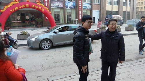 送考老师们陪同学生一同去往考点,带同学们熟悉考场,感受考前气氛。严平见几位考生面色凝重紧张不已,笑着给大家加油打气,并提醒检查好自己的准考证身份证及必要文具等。刘新强安慰考生多给自己一些良好的自我暗示、自我鼓励,暗示自己这次考研肯定行、肯定能考好,紧张的情绪可以得到缓解。老师们不断为考生们鼓励加油,缓解他们考试前的紧张心理,直到目送他们进入考场。在一片加油声中,临近九点,大家信心满满地进入考场。