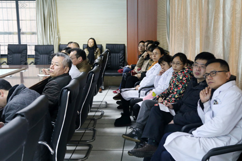 黄啸林宣读了教育部关于第七届临床技能竞赛的通知,介绍说明了参赛的要求和比赛组织形式。教学管理科刘丹科长介绍了此次集训的学生和其指导老师的安排情况,并通过征询各指导教师意见而最终确定了各项目训练的时间安排。