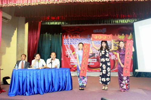 1月15日,由柬埔寨王家研究院孔子学院主办,柬埔寨王家文化与艺术大学承办的“中国春节”文化活动在柬埔寨王家文化与艺术大学大礼堂举行。王家文化与艺术大学副校长秦崇明(Ching Chhom Mony)、孔子学院院长谢莫尼勒(HE CHEA Munyrith)、中方院长帅式毅参加了此次活动。