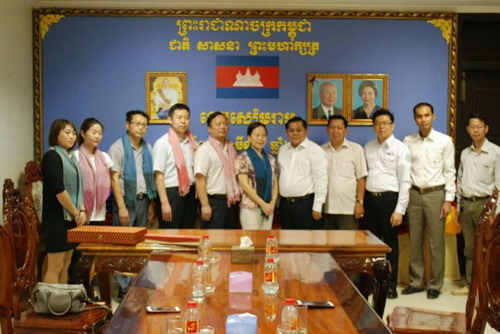 3月7日,江西省南昌市外事侨务办公室黄小燕主任、南昌市新建区人民政府何彦军副区长等一行6人,在柬埔寨王家研究院孔子学院院长谢莫尼勒阁下(H.E.CHEA Munyrith)的陪同下到访暹粒省政府,暹粒省副省长文塔烈阁下(H.E. BUN Tharith)会见代表团一行并座谈,来宾一行还看望了孔子学院暹粒省政府官员汉语班学员并进行了交流。