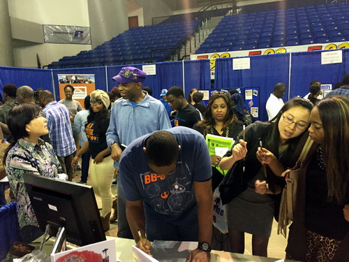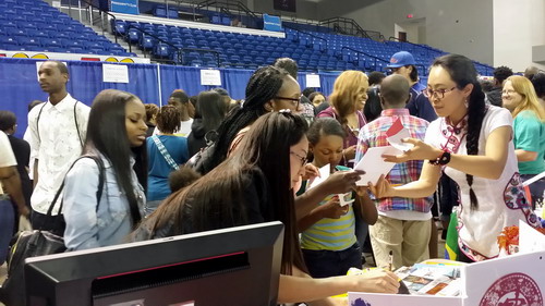 萨凡纳州立大学每年会在春、秋两季举办“校园开放日”活动,邀请全美的高中生和家长们来参观大学校园,并通过展台的方式让来参观的学生和家长们与各个院系和服务部门的老师沟通交流。孔子学院的老师们都会充分利用这样的机会向大学师生和社区居民推介孔院。