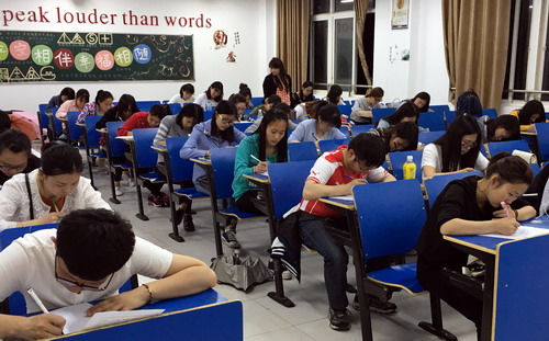 由外国语学院和浙江义乌诚商会联合开办的“PUE跨境电商培训班” 的初期教学任务已经顺利完成。五月四日晚七点整, 初级班结业笔试在香远楼217,218教室举行,负责PUE实践培训的商务英语教研室主任章志红老师和商务英语教研室的吴琪老师担任本次笔试的主考官,教务科科长王伟巡查了考场秩序,并对此次检测给予了充分的肯定。本次考试题目主要涉及一些基础的外贸知识和基础软件操作。