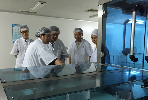 鲍副院长、张副院长一行还深入了企业的生产车间、质检中心、研发中心、产品包装、产品存储物流以及活动场所等进行全面考察。