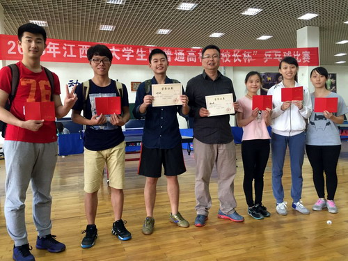 5月19至22日,2016年江西省大学生乒乓球比赛暨普通高校“校长杯”乒乓球比赛在南昌航空大学举行,我校乒乓健儿经过奋勇拼搏,获得男子单打第三名、女子双打第五名、男子团体第五名的较好成绩。