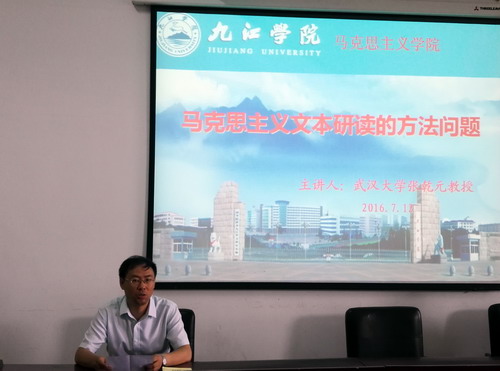 7月12日上午,应我校马克思主义学院邀请,武汉大学教授、博导张乾元应邀为我校马克思主义学院暑期培训班讲学。培训会由郑小东副院长主持,马克思主义学院院长汪力平及培训班全体学员参加了培训。