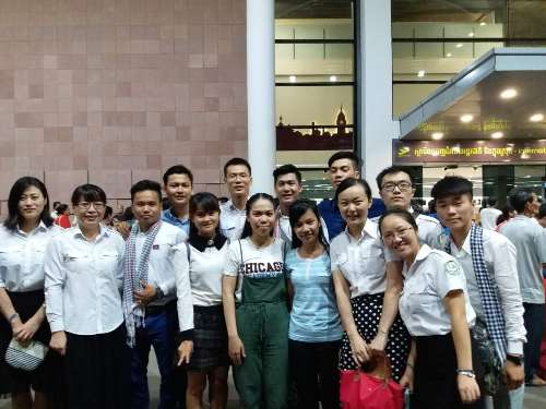 9月7日晚,柬埔寨王家研究院孔子学院公派教师邢慧莹、刘朝霞、付蕊等在金边国际机场欢送赴中国江西九江学院留学的学生们。