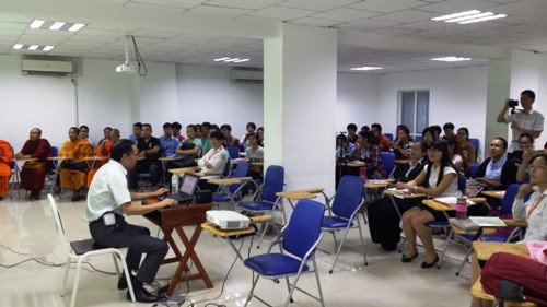 9月21日,柬埔寨王家研究院孔子学院亚欧大学举办2016年 “孔子学院日系列活动”之“孔子的故事”文化讲座。活动由亚欧大学中文系负责人邢慧莹主持,孔子学院中方院长夏修龙主讲,中文系师生共100余人参加。