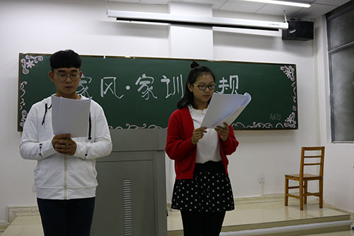 团日活动采取了多样的互动方式激发了同学们的积极性,让同学们深深思考“家风、家训、家规”在自己家中有何种方式的体现,有的班级根据自身班级的特色加上了《千古家训》引导来让同学们沉思于我国优良的传统文化,并同时加之带领同学们朗读经典优秀的家训。