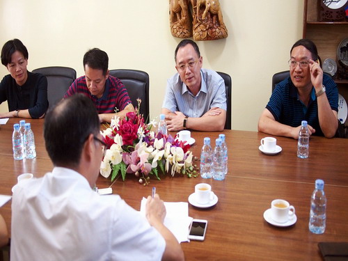 夏修龙院长向金湘军书记介绍了柬埔寨王家研究院孔子学院的基本情况,包括办学历史、办学规模、教学情况、文化活动等。夏修龙院长表示,柬埔寨孔子学院做了一些有特色的工作,包括开办官员班、官兵班、开展中柬溯源研究和“一带一路”的宣传和研究等, 下一步将在柬埔寨国别研究、职业技术培训等开展工作。