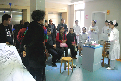 本次活动由内分泌科护士长周素筠主持,护理部曹春凤老师现场观摩指导,为患者讲解了规范注射的重要性及必要性;糖尿病专科护士江维及护士詹梦云还为患者进行了讲课,通过图文并茂,生动形象的讲授方式,让糖友们学会如何规范注射胰岛素。活动现场气氛极其活跃,大家发言积极踊跃。