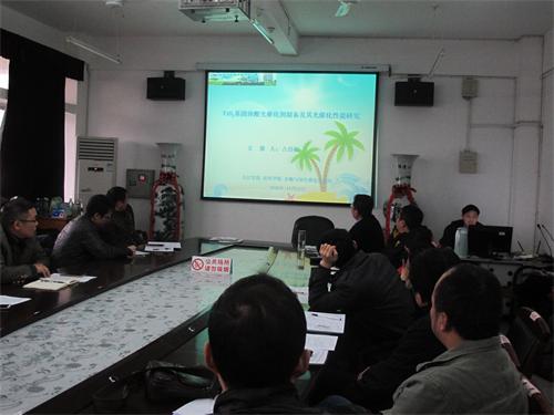 杨涛博士在报告中介绍了其研究团队取得进展及的成果,介绍了其研究技术和原理;吴传保博士介绍了其研究团队的方向及领域,以及团队成员目前取得研究成果;占昌朝博士代表多酸化学与绿色催化团队介绍了TiO2基固体酸光催化剂制备及其光催化性能研究。