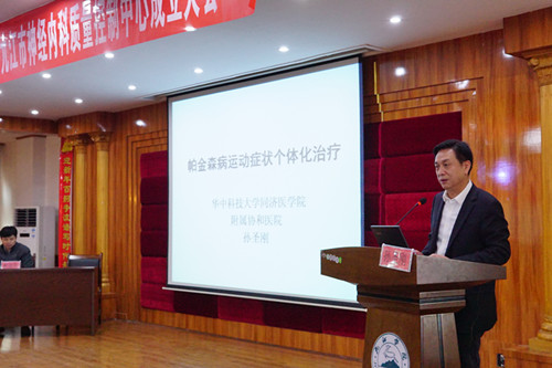 张南华书记致辞。他说,质控中心的成立,能进一步规范我市神经内科的医疗管理,不断提升神经内科重要疾病的诊疗水平,掌握学科前沿发展动态,是我市医疗卫生事业发展进程中的一个新的里程碑。