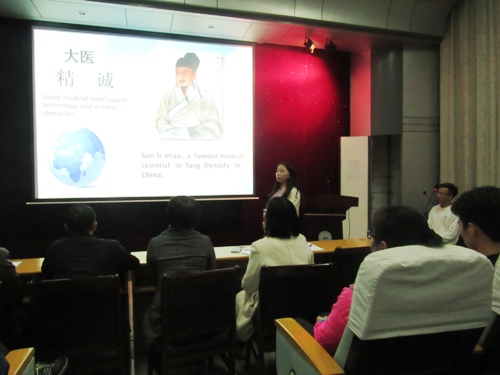 15名中外籍学生围绕医学职业精神、医学人文的国际人道主义、医学创新、医学生誓言内涵及医患共情等主题进行了演讲,演讲者激情满满、观点新颖、PPT制作精细,展现了学生们较高的医学人文素养。在场学生认真听讲,并时时报以热烈的掌声。