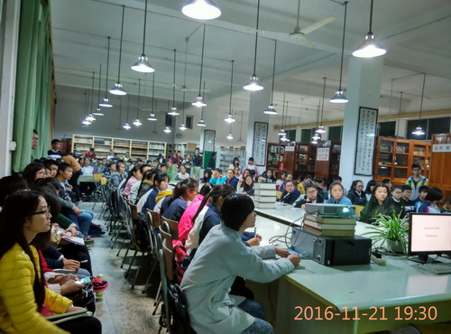 为了将图书馆阅读推广活动推向深入,让广大学子在大学环境中激发梦想,树立人生目标,同时正确理解读书与成才的密切关系。11月21日晚,浔东分馆在二楼听音室举办“读书与成长”公益讲坛暨启动活动,由浔东分馆副主任龚金林老师主持,来自基础医学院、药生学院、护理学院120余名同学参加。第一期讲坛题目是“读书与成才之我见”,主讲嘉宾为我校基础医学院社会医学与公共卫生教研室的杨万水博士,杨博士毕业于复旦大学,是多项国家和省自然科学基金的主持者,发表SCI论文20余篇,先后担任多个国际英文期刊的审稿人。