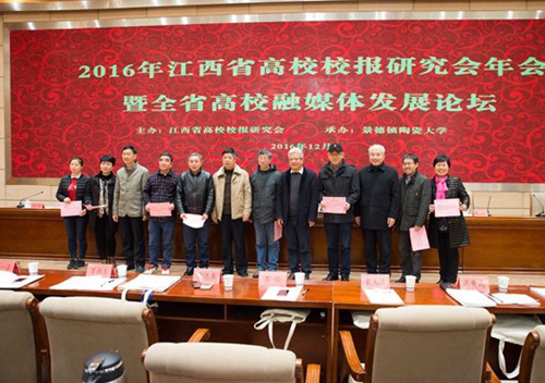 12月16至17日,江西省高校校报研究会2016年会暨全省高校融媒体发展论坛在景德镇陶瓷大学召开。来自全省高校的分管宣传工作的校领导、党委宣传部长或副部长、校报编辑部主任、编辑和学生记者代表,以及江西省各高校部分老报人、省高校校报研究会常务理事等60余人参加了本次年会。