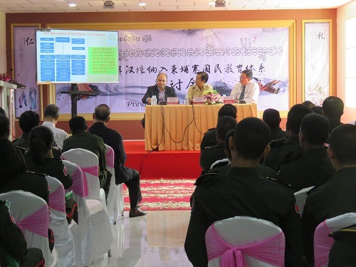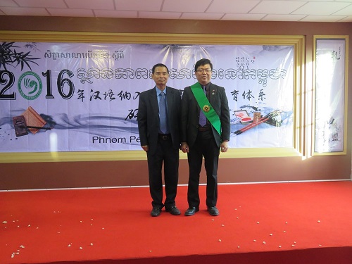 12月27日,为了交流柬埔寨汉语教学经验,探讨汉语纳入柬埔寨国民教育体系的可行性,由柬埔寨王家研究院孔子学院主办的2016年汉语纳入柬埔寨国民教育体系研讨会在柬埔寨孔子学院本部召开。柬埔寨王家研究院院长克罗媞达院士(H.E.Khlot Thyda)、柬埔寨教育青年体育部国务秘书皮查南阁下(Pit Chamnan)、柬埔寨劳工与职业培训部副秘书长得成功(Tes Rukhaphal)、柬埔寨参议院人力资源部主任诺普库克(Nop Kuch)、柬华理事总会副会长罗世兴、蔡伟华、立群学校校长谢智勇等出席会议,柬埔寨孔子学院院长谢莫尼勒(H.E.Chea Munyrith)、中方院长夏修龙及来自柬埔寨亚欧大学、西部大学和陆军学院等单位代表共200余人参加会议。开幕式由谢莫尼勒院长主持。