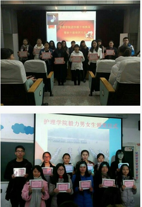 二是大力推进宿舍管理工作,营造文明温馨的宿舍环境。为了使同学们在学校生活得舒适、舒心,护理学院在每年新生入校军训完后都会开展“寝室文化设计大赛”活动,让刚进校住在同一寝室的同学们齐心协力、团结互助、一起动手布置设计自己在校生活的“家”。同时,院团委、学生会倡导同学们将国学素质养成融入到寝室设计中。院学生会生活部每周对宿舍卫生进行检查评比,每月根据宿舍卫生评比情况评选出文明寝室及卫生情况较差寝室,并出红白榜进行公示。这一系列的举措,推动了同学们好习惯的养成,增强了大家的凝聚力和荣誉感,同时也获得了学校的充分肯定,在近几年的学校寝室文化节中,我院多次获优秀组织奖,多人次获得才艺表演、“百优寝室”、“最优环保寝室”、“最具书香寝室” 、“最佳创意寝室”等称号。