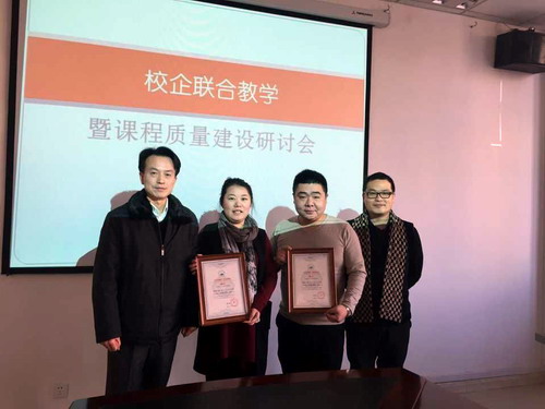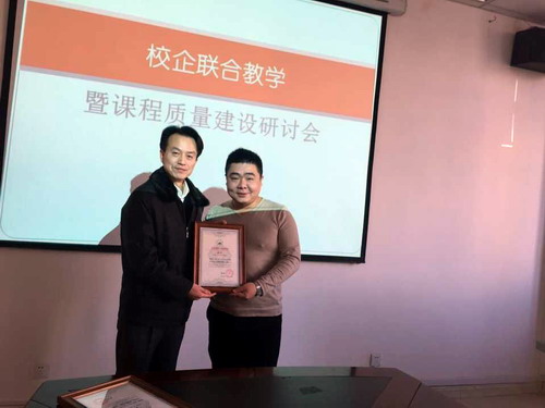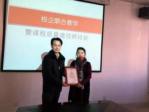 会后,吴院长给两位专家颁发了聘书并合影留念,正式开启了校企合作进行课程建设的工作。
