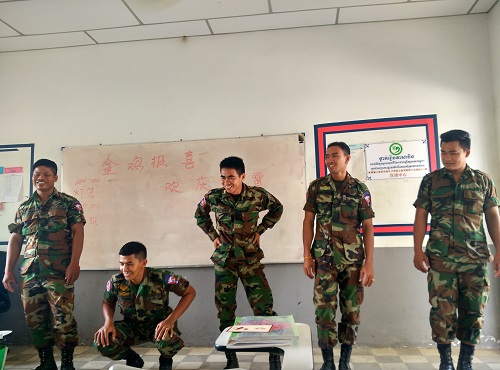 2月8日,在中国传统的元宵佳节即将来临前夕,柬埔寨王家研究院孔子学院911旅特种伞兵部队汉语中心举办了以“金鸡报喜,欢庆元宵”为主题的庆祝活动。柬埔寨孔子学院911旅特种伞兵部队汉语中心志愿者教师赵军主持本次活动,911旅汉语中心的20多名中文学生参加了此次活动。