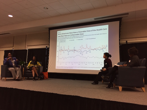 赵梅教授紧扣此次会议主题,向与会人员做了题为“美国医疗系统与优质保健”的讲座。她首先向大家简单介绍了美国的医疗体系,并指出了目前美国医疗系统存在的问题,接着,她用大量详实的调查数据展示了近七年来美国人对医疗保健的看法以及人均保健花费的变化。最后,赵梅教授与来自JC Lewis初级保健中心妇产科的丽萨·杰克逊医生(Lisa Jackson)、Abercorn家庭牙科的安·林顿医生(Ann Linton)和萨凡纳州立大学孔子学院外方院长佩吉·布拉德博士(Peggy Blood)一起讨论了美国的平价医保法案,大家各自发表了对该法案的看法以及在日常生活中平价医保法案对医院和医生们的影响,在场听众也积极参与互动讨论环节,反响热烈。