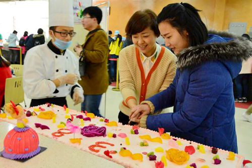 为了让全体女教职工过一个健康、和谐、快乐、温馨、难忘而有意义的节日,饮食服务中心经过提前筹划、精心准备,在属于女教工的日子里提供了两荤两素一甜汤3.8元女神套餐,其中有40余种菜品任意选择,为广大女教工春季养生准备了银耳莲子红枣汤;现场同时还进行了1.2米巨大蛋糕庆祝分享活动,在两名女教工代表分切大蛋糕后,百余名女教师在工作人员帮助下完成共同分享;教工餐厅还为女教工提供了餐后牛奶伴手礼,让女老师们的笑靥更加明媚。节日的喜庆气氛和共同分享的快乐洋溢在在餐厅每个角落,进一步增强了团队凝聚力和向心力,激发大家以更加饱满的热情投入到新学期的工作中来。