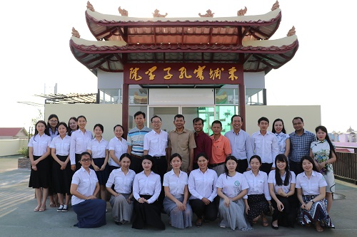 3月23日下午,柬埔寨国家语言文字委员会秘书长桑皮(SAN Peuv)先生和副秘书长宋春龙(Sum Chhum Long)先生等一行7人访问了柬埔寨王家研究院孔子学院,交流中国茶文化,柬埔寨孔子学院中方院长夏修龙教授热情接待了桑皮秘书长一行。