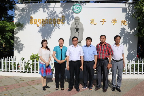 4月21日上午,中国广西师范学院副校长邓艳葵一行访问柬埔寨王家研究院孔子学院,孔子学院院长谢莫尼勒(H.E.CHEA Munyrith)阁下、院长助理陈晶雯老师热情接待了邓艳葵副校长一行,双方在会议室进行了交谈。