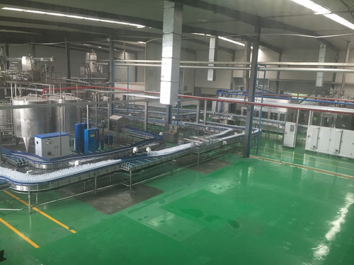 品控部部长段树林带领同学们参观了开放的办公室、产品展示厅,走进了饮料自动生产线,详细了解了饮料从原料到产品的整个工序流程。