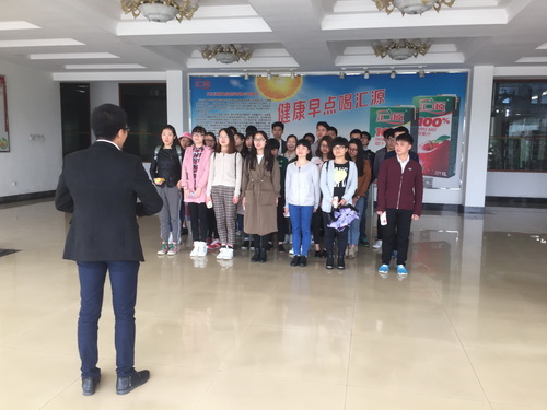 见习前,九江汇源果汁饮料有限公司人事部经理崔美云首先为同学们分发了刚下流水线的汇源果汁饮料,让同学们结合专业知识进行品尝,随后向同学们简要介绍了公司相关情况,强调了见习的要求和注意事项。