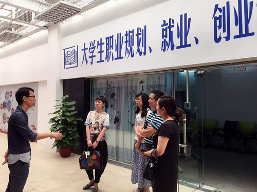 在广州,调研小组先后走访了广州国际创新城智慧产业孵化器、广州青创职业技能培训有限公司、广州因卓商贸有限公司以及广东元慧软件科技有限公司。广州智慧产业创业孵化器互联网+运营众创众筹部总经理蔡宗颖热情的接待了我校调研小组,并带领大家参观了位于广州市番禺区大学城信息枢纽楼的孵化基地。蔡经理表示,在全国“大众创业、万众创新”的号召下,越来越多的年轻人开启了创业之路,他们的主要职能就是为新创办的小企业提供有利于存活、发展的服务环境和空间环境的公益性服务。像他们这样的孵化基地在全国各地也不在少数,多数进入孵化器的创业者,都可以得到低成本或无成本的各种服务,化解创业风险,入驻的企业也多数为近几年毕业的人员所创办。校友企业广州因卓商贸有限公司总经理潘娟和广东元慧软件科技有限公司副总经理王洪梅,对母校老师的前往也表示了热烈的欢迎。在畅谈中,校友们都纷纷感谢学校多年来的培育之恩,在自己力所能及的范围内,非常愿意为学校做出应有的贡献,也乐意与学校一起共同培养学生,加强学校与企业之间的互动。同时,两位校友也对在校的学生提出了中肯的建议,品德为先、诚实守信,加强动手实践能力和综合素质的提升。