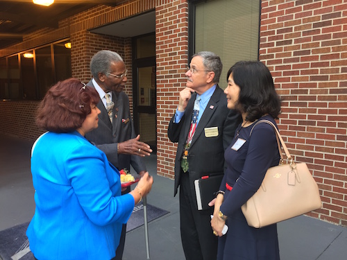 美国当地时间6月2日,萨凡纳州立大学孔子学院中方院长罗其娟、汉语教师钟佳艺应邀出席了萨凡纳查特姆公立学校联盟新任教务长安·莱维特博士的就职见面会。萨凡纳查特姆公立学校联盟董事长切斯特·埃利斯、萨凡纳律师协会会长道格·安德鲁斯以及来自萨凡纳查特姆公立学校联盟的80多名教育官员和学生代表参加了此次见面会。