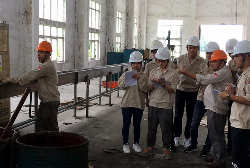 在九江奥盛新材料有限公司,公司总工程师游胜意、副总经理周生根亲自参与,与机材学院带队老师满达虎制定实习计划。在入厂安全教育之后,两位企业高管带领学生分别参观了检验、拉丝、合股、镀锌、稳定化、无粘结等工序部门。在每个工序车间,总工程师游胜意和副总经理周生根都耐心详细地讲解了每个工序的理论依据和操作工艺。通过此次认知实习,同学们对所学的《材料科学基础Ⅱ》、《材料成形原理》等专业必修课有了更深入的理解,同时为“卓越计划”后续专业课程的学习打下了坚实的基础。
