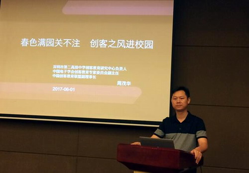中国创客教育联盟副理事长周茂华主任作报告