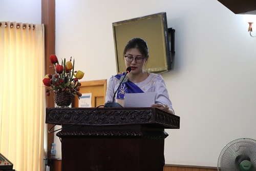 桑皮秘书长介绍了柬埔寨语言文化培训班的开办情况,对学员们的表现给予充分肯定。学员代表、志愿者汉语教师何其颖代表培训班学员发言,她表达了学员们对柬埔寨国家语言文字委员会以及授课老师们的感激之情。