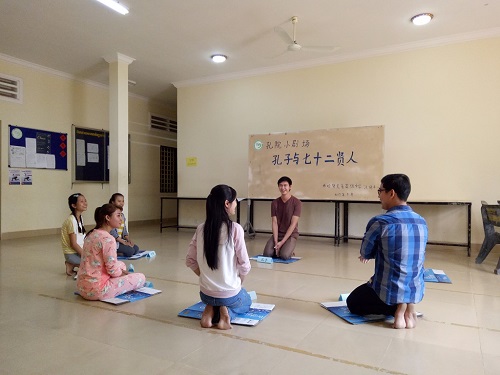 9月24日,高级口语班的学员们用标准流利的汉语表演了话剧《孔子与七十二贤人》,生动再现了孔子与弟子讲学时的场景。通过直观具象的表演,学员们对孔子及其教育思想有了进一步了解。