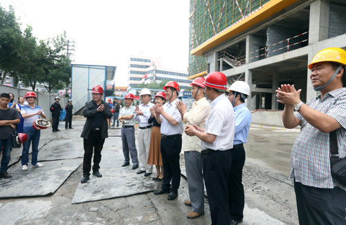 大楼自开工以来,九江市各级领导、九江学院领导高度重视,多次到工地现场检查指导;医院领导频频深入施工现场了解工程进度,并与各合作方共同研究和破解建设难题,对施工过程中出现的困难及时协调解决;全院各职能部门积极配合,调配资源,保障工程稳步推进;全院职工对工程建设积极建言献策。大家都心往一处想,劲往一处使,全力助推新大楼建设。大楼封顶标志着主体工程已经完成,也意味着临床医学院/附属医院离实现附院腾飞这一宏伟目标更进了一步。